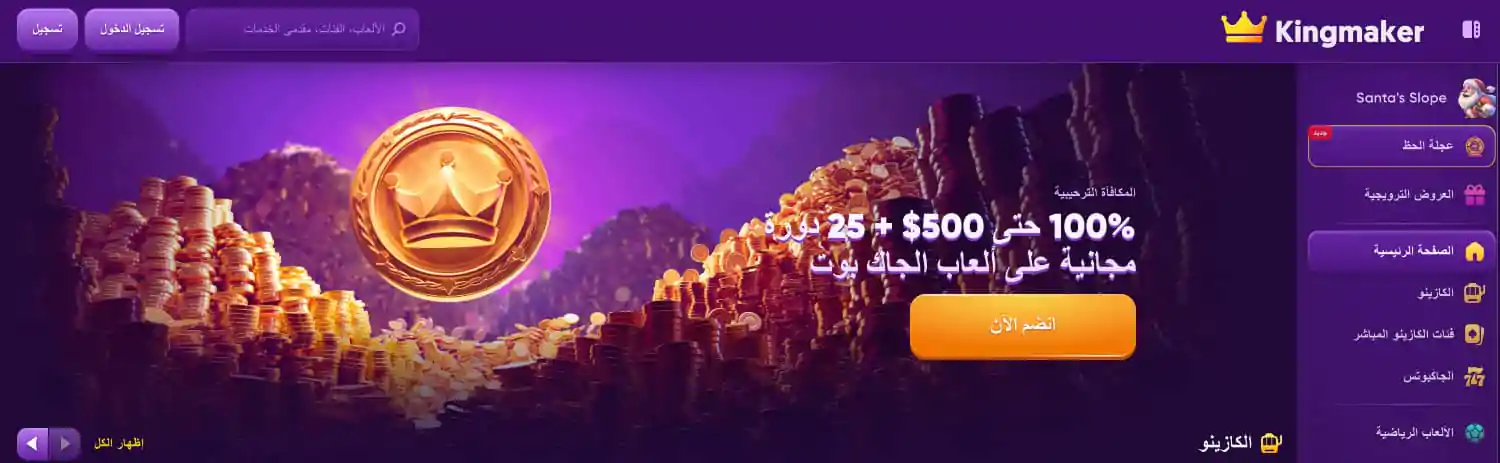 تسجيل الدخول والتسجيل في كازينو Kingmaker
