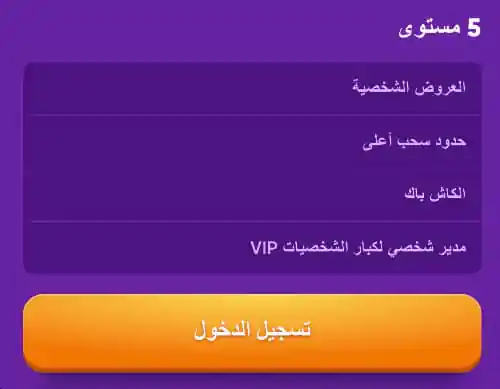 | 5 | عروض شخصية | دردشة مباشرة 24/7 | حدود سحب أعلى، استرداد نقدي، مدير VIP شخصي |