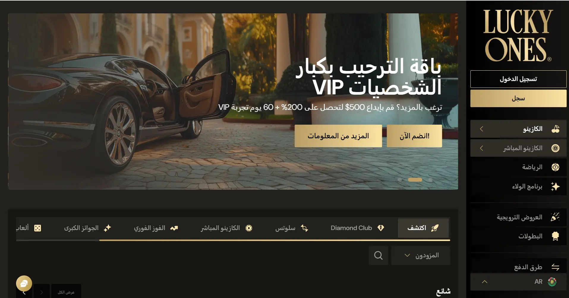 Lucky Ones كازينو جديد تماماً، انطلق في 2025. الفكرة بسيطة: ألعاب كازينو ومراهنات رياضية في مكان واحد، وهذا شيء يبحث عنه كثير من اللاعبين في المنطقة.