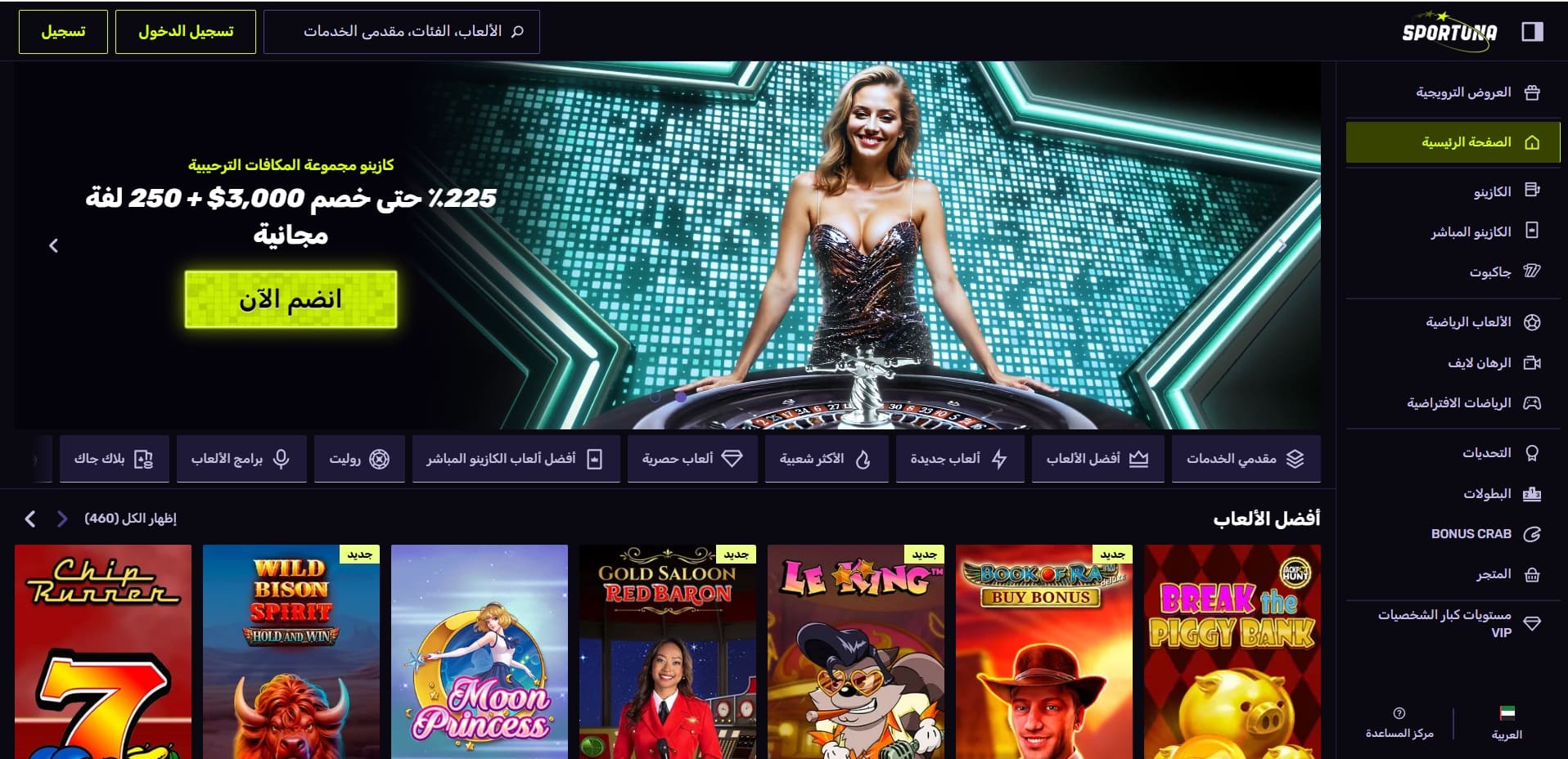 يُعتبر Sportuna واحدًا من الكازينوهات الحديثة التي انطلقت في عام 2022 بترخيص من أنجوان غيمينغ (Anjouan Gaming)، ويقدّم تجربة لعب سلسة، مدفوعات سريعة، وأكثر من 8000 لعبة من أشهر المزودين العالميين. يحظى بشعبية جيدة بين اللاعبين في الخليج بفضل دعمه لطرق الدفع المتنوعة، بما فيها العملات الرقمية، إضافة إلى خدمة عملاء ملائمة للمستخدم العربي. سواء كنت من محبي السلوتس، ألعاب الكازينو المباشر، أو المراهنات الرياضية — ستجد كل شيء في مكان واحد مع سهولة التنقل وسرعة التصفح.